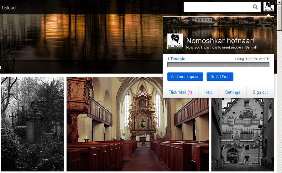 So hatte man vorher im Free Account lediglich die Möglichkeit bis zu maximal 200 Bilder hochzuladen. Jetzt erhält man auf seiner Startseite oben rechts, beim drüberscrollen über das eigene Avatar/ Nutzerbild eine kleine Grafik in Ladebalken Manier, wieviel von maximal 1 Terrabyte man schon verbraucht hat. Bei mir sind es mit 197 Bildern derzeit zum Beispiel 0.92%.