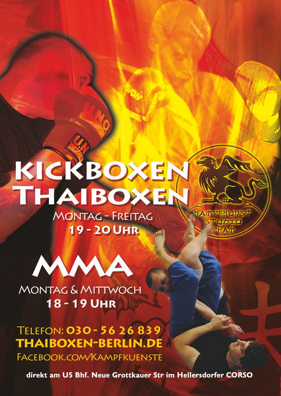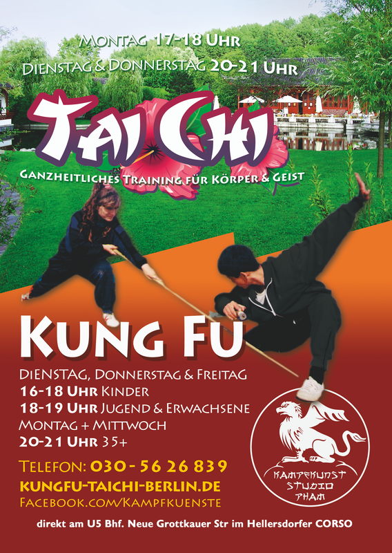 Für die Plakate wurden alte Flyer und Layouts teilweise übernommen und neu angepasst. Aus Gründen der Effizienz und Kosten wurde entschieden ähnliche Themengebiete auf jeweils ein Plakat zu platzieren. So kamen nun jeweils ein Kung Fu/ Tai-Chi Plakat, ein MMA, Kickboxen / Thaibox Plakat und ein Kinder Selbstverteidigungs- und Krav Maga Plakat dabei raus.