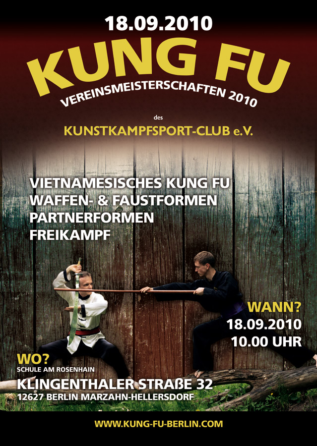 Plakatentwurf und Druck in A2 die diesjhährigen Kung Fu Vereinsmeisterschaften in Hellersdorf-Marzahn Berlin. Fotografie von Mathias Jeske
